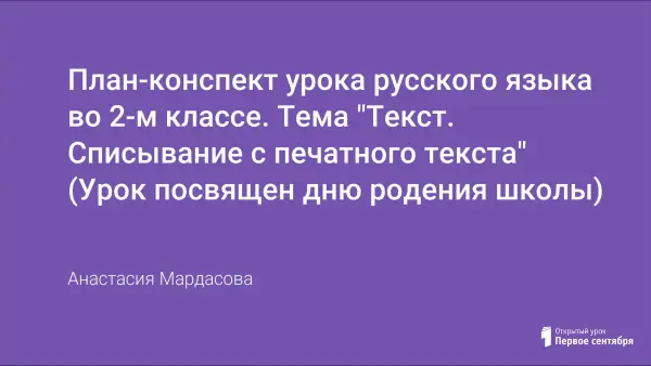 Урок посвящен формированию умения списывать с печатного текста; развитию речи, мышления, памяти учащихся; воспитанию любви к русскому языку, к своей школе, аккуратности, усидчивости; расширению словарного запаса детей.