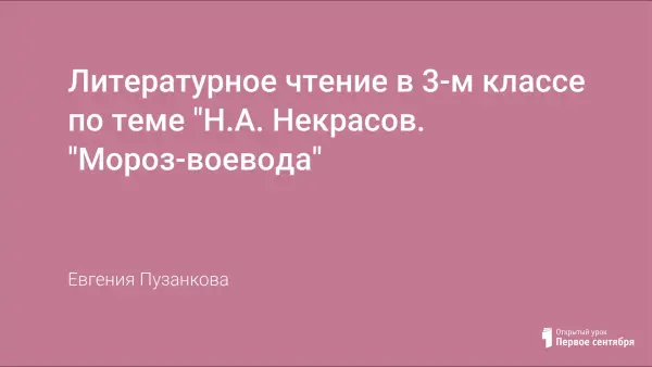 План-конспект урока с презентацией по литературному чтению. Цель данного урока: расширять читательский кругозор через знакомство с поэзией Н.А. Некрасова, отрабатывать навыки выразительного чтения, пополнять словарный запас учащихся, развивать речь, память, внимание, наблюдательность, самостоятельность; способствовать эстетическому воспитанию.