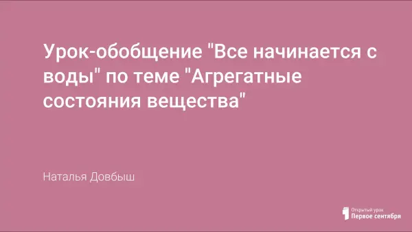 На уроке повторяются и обобщаются все известные сведения о воде. Проводятся опыты с водой и выполняются экспериментальные работы по определению некоторых характеристик воды.