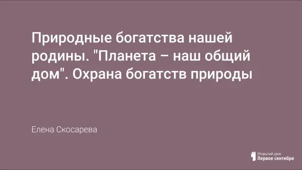 Урок посвящен природным богатствам нашей родины, не только подземным, но и почве, воздуху, воде, силе воды, ветра, солнцу, растениям, животным, новым экологическим способам получения энергии. На уроке и занятии кружка «Жизнетворчество» формируются экологические знания учащихся.