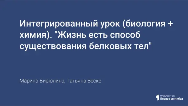 Интегрированный урок (биология + химия). "Жизнь есть способ существования белковых тел"