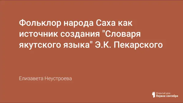 Урок русского языка, на котором расширяются представления учащихся о фольклоре и о роли изучения фольклора Э.К. Пекарским в составлении словаря; расширяется словарный запас учащихся и формируется навык работы со словарем, прививается интерес к поиску толкований непонятных слов.