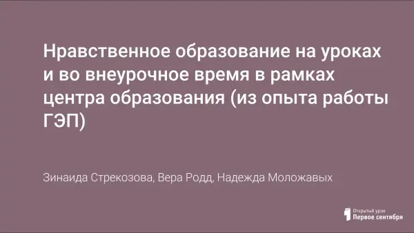 Нравственное образование на уроках и во внеурочное время в рамках центра образования (из опыта работы ГЭП)