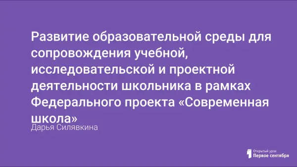 Знакомясь с концепцией национального проекта "Образование", хотелось бы обратить внимание на федеральный проект «Современная школа». Этот проект направлен на внедрение новых методов обучения и воспитания, образовательных технологий, обеспечивающих освоение обучающимися базовых навыков и умений, повышение их мотивации к обучению и вовлеченности в образовательный процесс. Для того чтобы Россия вошла в число 10 ведущих стран мира по качеству общего образования, в школах обновят образовательные программы и внедрят систему оценки качества на основе международных исследований. Помимо прочего, школы будут привлекать специалистов без педобразования. Появляются уроки технологии на базе компаний и детских технопарков «Кванториум». Ещё в планах министерства полностью избавиться от третьей смены в школах.