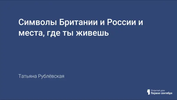 Данный урок содержит информацию о символах Британии, России и малой родины. Использование материалов урока способствует воспитанию уважения к родной и иноязычной культуре, расширяет кругозор, укрепляет мотивацию изучения английского языка.