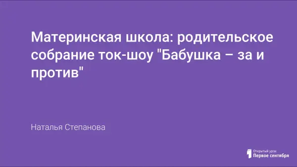 Цель урока: показать старшему поколению, бабушкам, их значимость в воспитании, обучении, развитии своих внуков; вызвать их на исследование, обсуждение и решение проблемных ситуаций, сложившихся в их семьях; обеспечить атмосферу непринуждённого общения друг с другом.