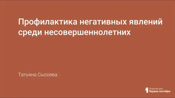 Установлено, что даже школа при всей своей педагогической оснащённости не может целиком восполнить то, что теряется на стадии семейного воспитания. Поэтому и работу по профилактике негативных явлений среди несовершеннолетних необходимо начинать с родительского всеобуча по данному направлению. Данная разработка включена в родительский лекторий, который проводится в нашей школе.