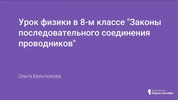 Урок по учебнику "Физика 8" А.В. Перышкина. Цель урока: вспомнить старый материал, который подводит к новому материалу; изучить его; провести систематизацию знаний; вывести законы последовательного соединения; экспериментально доказать законы последовательного соединения.