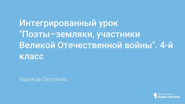 Интегрированный урок в 4-м классе по теме "Поэты-земляки, участники Великой Отечественной Войны". Целью урока является знакомство учащихся с творчеством поэта-земляка Н.И. Букина посредством интеграции внеклассного чтения, математики, русского языка. В ходе урока учащиеся знакомятся с творчеством поэта.