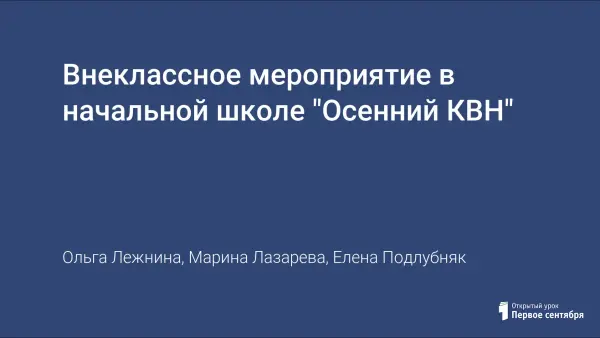 Осенний праздник, который проводится в форме КВН. Мероприятие предназначено для учеников 2-го или 3-го класса. Цель праздника: расширить кругозор детей, дать возможность проявиться их творческим способностям в ходе интересных конкурсов. Праздник проводится совместно с родителями, что укрепляет взаимосвязь семьи и школы.