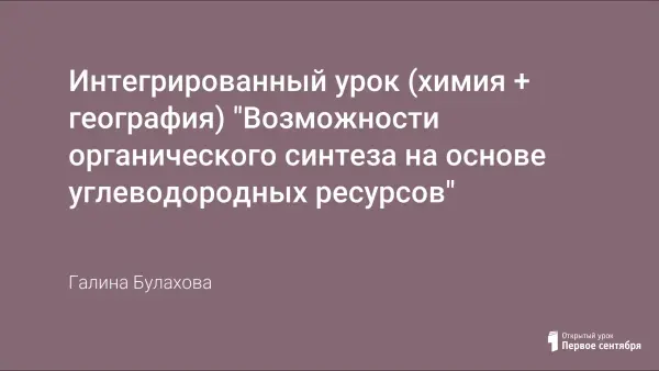 Интегрированный урок (химия + география) "Возможности органического синтеза на основе углеводородных ресурсов"