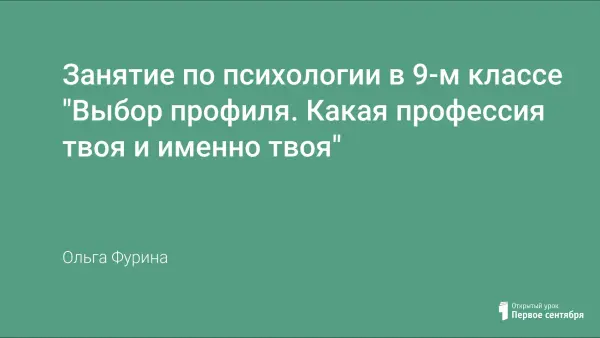 Занятие дает учащимся представление о существующей классификации типов профессий по предмету труда. Кроме теоретического материала, который подается в доступной и наглядной форме, применяются и практические упражнения (развитие творческого мышления, передача информации, принятие речевого сигнала, координация движений).