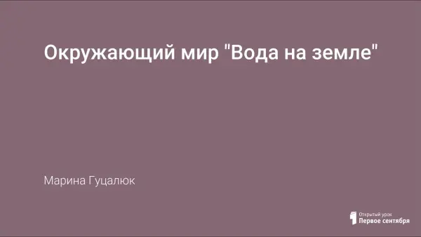 Урок окружающего мира, на котором учащиеся получают представление о воде, ее свойствах; о Мировом океане, морях и водоемах.