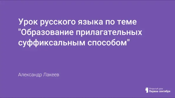 Урок позволяет познакомить учащихся с суффиксальным способом образования имён прилагательных. Дает представление о многообразии суффиксов, участвующих в этом процессе. Развивает орфографическую зоркость, устную и письменную речь учащихся.