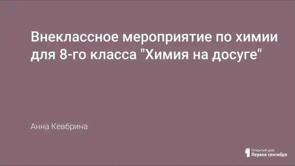 Данное внеклассное мероприятие по химии для 8-го класса можно провести в рамках традиционной предметной недели. В статье изложен примерный сценарий такого мероприятия, которое проводится в форме соревнования между двумя командами учащихся (число команд может быть больше). Ребятам предлагаются разнообразные по форме и содержанию интересные задания, связанные с химией, но разные по степени трудности.