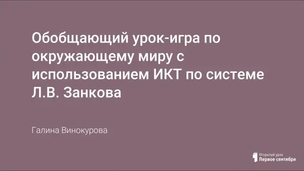 Обобщающий урок по предмету "Мы и окружающий мир" для учащихся 2-го класса разработан в соответствии с основной задачей системы обучения, направленной на общее развитие школьников (системы Л.В. Занкова), - раскрытие широкой картины мира, осознание его единства и вечного движения.