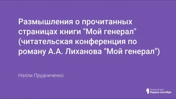 Методическая разработка конференции по роману А.Лиханова «Мой генерал» (6-й класс) помогает увидеть проблемы воспитания подростка, их взаимоотношений с представителями старшего поколения, способствует формированию нравственных ценностей, развивает коммуникативные компетенции, возрождает интерес к чтению.