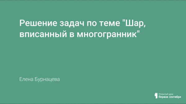 Представлена презентация к решение задач по теме "Шар, вписанный в многогранник".
