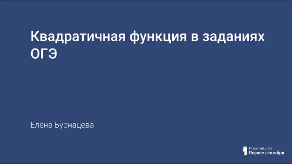 Представлена презентация по теме "Квадратичная функция в заданиях ОГЭ".