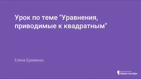 На уроке комплексного применения знаний разбираются основные методы приведения уравнений к квадратным. Групповая форма работы при выполнении заданий с элементами исследований способствует совместному поиску решений, формирует у учащихся умение высказывать и доказывать свою точку зрения. Одним из этапов урока является тестирования, где каждому предстоит пройти испытание на прочность полученных знаний.