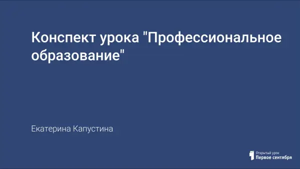 Цели урока: сформировать знания о типах профессий, профессиональной деятельности; сформировать умение работать с источниками информации о путях получения профессии, основных профессиональных требованиях; закрепить представление о смысле и значении труда в жизни человека и общества; способствовать формированию представления о жизненном и личном профессиональном плане; объективно осуществлять самоанализ уровня развития своих профессионально важных качеств (внутренних условий для достижения цели) и соотносить их с требованиями профессий, сфер трудовой деятельности к человеку; воспитывать уважение к людям разных профессий.