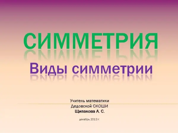 Обобщающий урок по теме. Презентация может быть использована на уроках геометрии при изучении темы «Симметрия. Виды симметрии». Материал можно применять как частично (отдельные слайды), так и в полном объеме.
