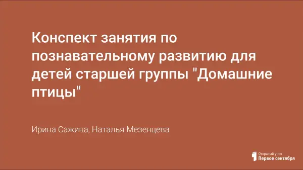 Конспект занятия по познавательному развитию для детей старшей группы "Домашние птицы"