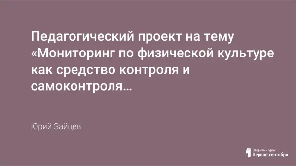 Цель проекта: развитие образовательной среды школы, стимулирующей физическое развитие школьников и уровень успеваемости в целом через внедрение мониторинга по физической культуре; формирование личности школьника, которая характеризуется стремлением к заботе о своем здоровье и ценностным отношением к нему, умением вести здоровый образ жизни.