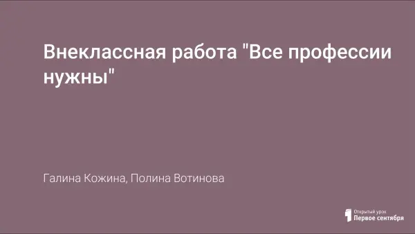 На внеклассном занятии дети знакомятся с современными профессиями. Это мероприятие воспитывает уважение к людям различных профессий, расширяет кругозор, активизирует речь ребёнка, обогащает словарный запас.