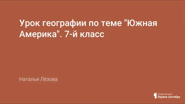 Урок изучения нового материала с использованием ИКТ. Методическая цель урока – сформировать у учащихся представление о физико-географическом положении Южной Америки, величине территории, береговой линии и истории открытия материка. Южная Америка – материк многих рекордов, поэтому материал урока содержит дополнительную информацию о самых интересных объектах природы.