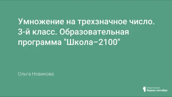 Автор знакомит детей с алгоритмом умножения на трехзначное число, развивает навыки устного и письменного счета, способствует развитию логического и математического мышления. Учащиеся развивают внимание, память, речь и познавательный интерес. Презентация делает урок более наглядным и интересным.