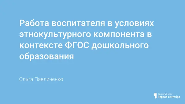 В связи с введением федерального государственного образовательного стандарта дошкольного образования роль этнокультурного компонента образования сегодня стала актуальной. Поэтому одним из важнейших направлений работы дошкольного учреждения в целом и каждого педагогического работника в отдельности является поиск новых путей реализации этнокультурного компонента образования, приобщения дошкольников к духовным ценностям своего народа.