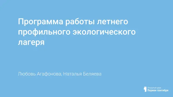Программа представляет собой комплексную методику проведения летнего экологического лагеря, предназначена для педагогов, работающих в профильных лагерях.