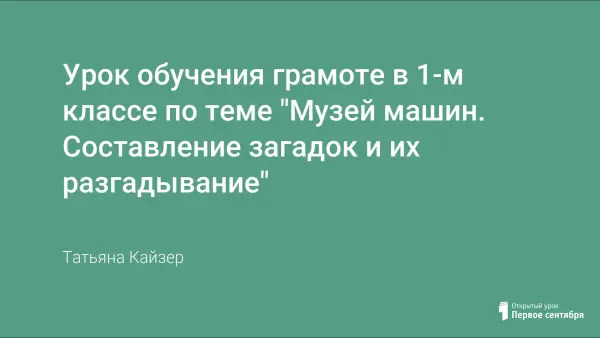 Цель данного урока: углублять знания о предназначении машин; группировка их; составление слов из изученных букв; развивать умение составлять загадки и их разгадывать.