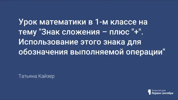 Основной целью урока является знакомство со знаком сложения "+", формирование умения составлять математические рассказы по рисунку, развитие внимания, мышления, математической речи, творческого воображения.