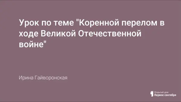 Задачи урока: воспитание уважения к подвигу советского народа, обучение установлению причинно-следственных связей в ходе исторического процесса. Тип урока - урок изучения нового материала, его обобщения и закрепления. Урок построен в форме презентации. Используются общеклассная, групповая, индивидуальная формы работы с учащимися.