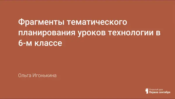 Фрагменты тематического планирования уроков технологии в 6-м классе