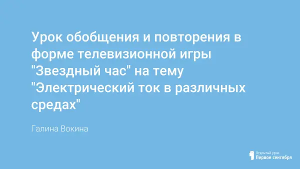 Этот урок проводится после изучения раздела «Электрический ток в различных средах». Участниками игры становятся учащиеся, выполнившие все требования при изучении данной темы, а все остальные – друзья-зрители. Если класс маленький, то сразу разбиваются на пары участник-друг.