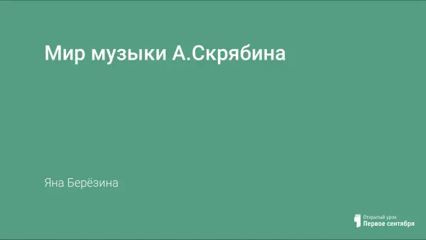 Урок посвящен творчеству композитора Александра Скрябина. Музыкальный материал урока раскрывает значение музыки в жизни человека, развивает осознанное восприятие учащимися музыки. Урок представлен в виде диалога.