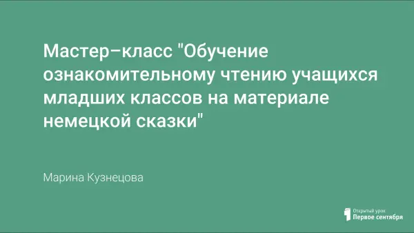 Мастер–класс "Обучение ознакомительному чтению учащихся младших классов на материале немецкой сказки"