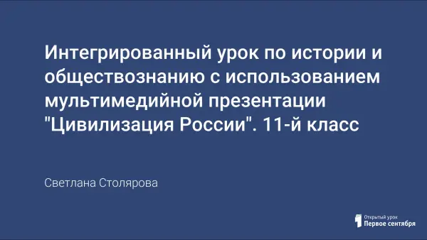 В ходе урока рассматриваются различные точки зрения на место России в цивилизационном процессе, раскрываются черты самобытности России и влияние западной цивилизации.