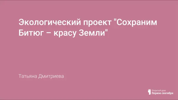В статье даётся описание проекта, цель которого — сохранить взятый под контроль участок реки Битюг в экологически чистом состоянии. Дано описание методик исследования состояния воды в реке, почвы на побережье реки, сточных вод, поступающих в реку. Представлены результаты работы, в которых вскрыты причины загрязнения реки, найдены способы их устранения.