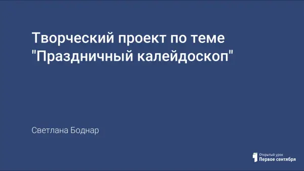 Творческий проект «Праздничный калейдоскоп» как эффективное средство проектной деятельности помогает реализовать программные требования художественно-эстетического раздела (музыкальная и театрализованная деятельность). Организация воспитательно-образовательного процесса в предшкольных группах кратковременного пребывания требует от специалистов креативного подхода в работе.