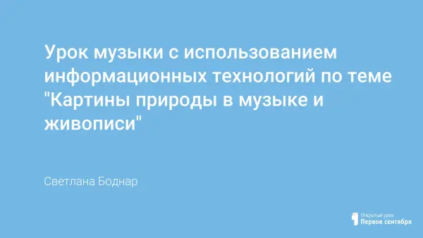 Разработка урока ставит своей целью дать определение «музыкальный пейзаж», с помощью демонстрации картин обогатить представление учащихся о связи искусства с жизнью, выявить сходство музыкальных и изобразительных красок. Используется мультимедийная презентация.