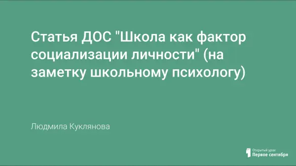 В представленной статье содержится теоретический материал по социализации личности школьников, который можно использовать для проведения семинаров-практикумов с педагогами и составления презентации по данной теме. А также материалы из опыта работы педагога-психолога школы в работе с детьми "группы риска" и ведения спецкурса "Мой выбор" для учащихся 5—6-х классов.