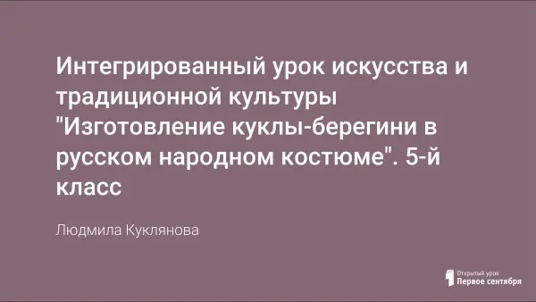 Урок рассчитан на возрастную категорию 5-го класса. Составлен на основе программы "Изобразительное искусство и художественный труд" для 1–9-х классов Б.М. Неменского. Урок входит в блок "Древние корни народного искусства", в тему "Народный праздничный костюм". Материал урока совмещён с литературно-художественным, историческим, фольклорным материалом, позволяющим всесторонне воздействовать на развитие личности ребёнка.