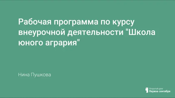 Каждый выпускник нашей школы должен стать всесторонне грамотным землепользователем, как минимум, в масштабах личного подсобного хозяйства. Сегодня сельское хозяйство возрождается и остро нуждается в специалистах. И поэтому в данное время профессия овощевода очень востребована. Возможно, в будущем наши воспитанники заинтересуются этой профессией, и им захочется посвятить себя сельскому хозяйству. Рабочая программа «Школа юного агрария» является дополнительным материалом к школьным предметам – природоведение, биология и технология сельскохозяйственный труд.
