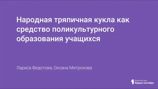 Народная тряпичная кукла как средство поликультурного образования учащихся