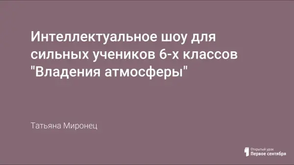 Интеллектуальное шоу для сильных учеников 6-х классов "Владения атмосферы"