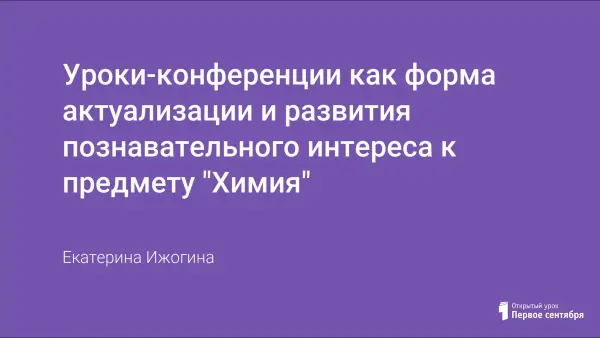 В материале обобщен опыт проведения уроков -конференций для учащихся различных классов по химии. Данный тип уроков выполняет следующие функции: развитие содержания базисного курса химии; развитие умения работы с различными информационными источниками. А также представлены планы разработанных уроков.